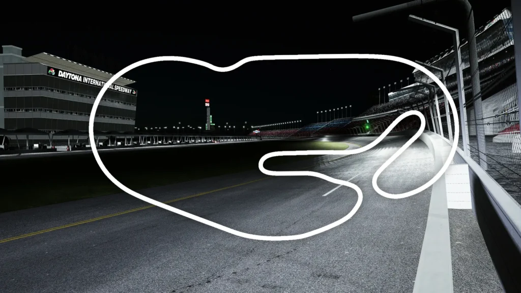 En su configuración road course, Daytona combina sectores de velocidad extrema en el óvalo con zonas de frenada fuerte y curvas cerradas en el infield. La transición entre ambos exige estabilidad del auto y referencias claras en frenada.